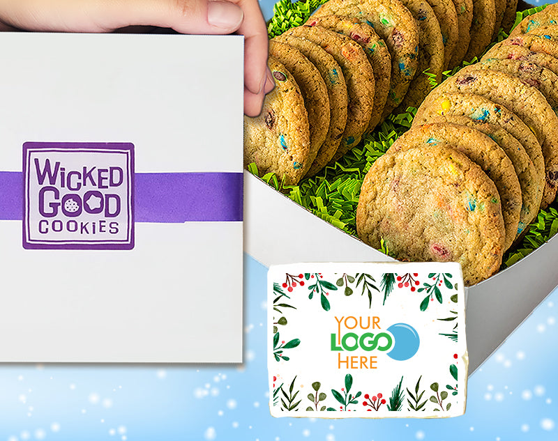 Winter Holiday M&M Munch Logo Cookie Gift Box w/ Printed 3x4 Rectangle