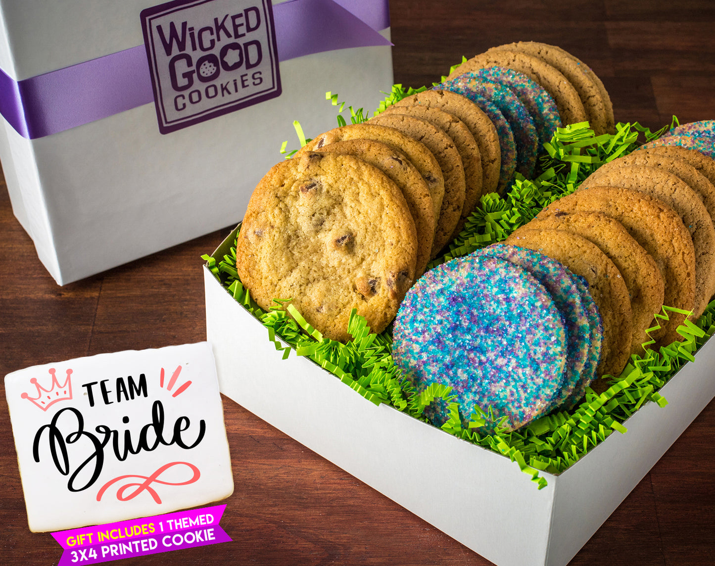 Team Bride Nut-Free Cookie Assortment Gift Box w/ Printed 3x4 Rectangle